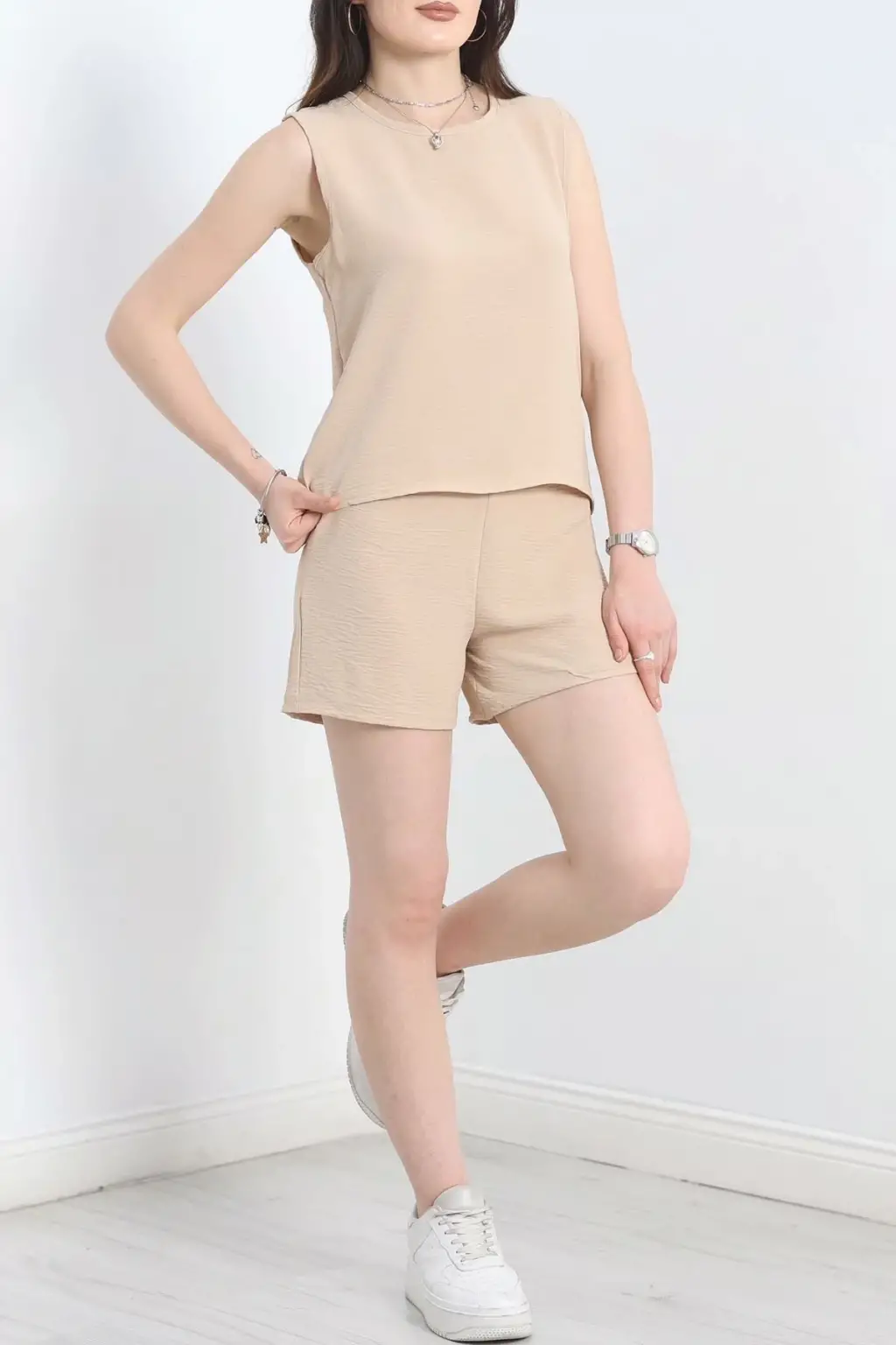 Şortlu Ayrobin takım bej, gardırobunuzun vazgeçilmez parçalarından biri olmaya aday. Şimdi hemen sepetinize ekleyin ve tarzınızı konuşturun!