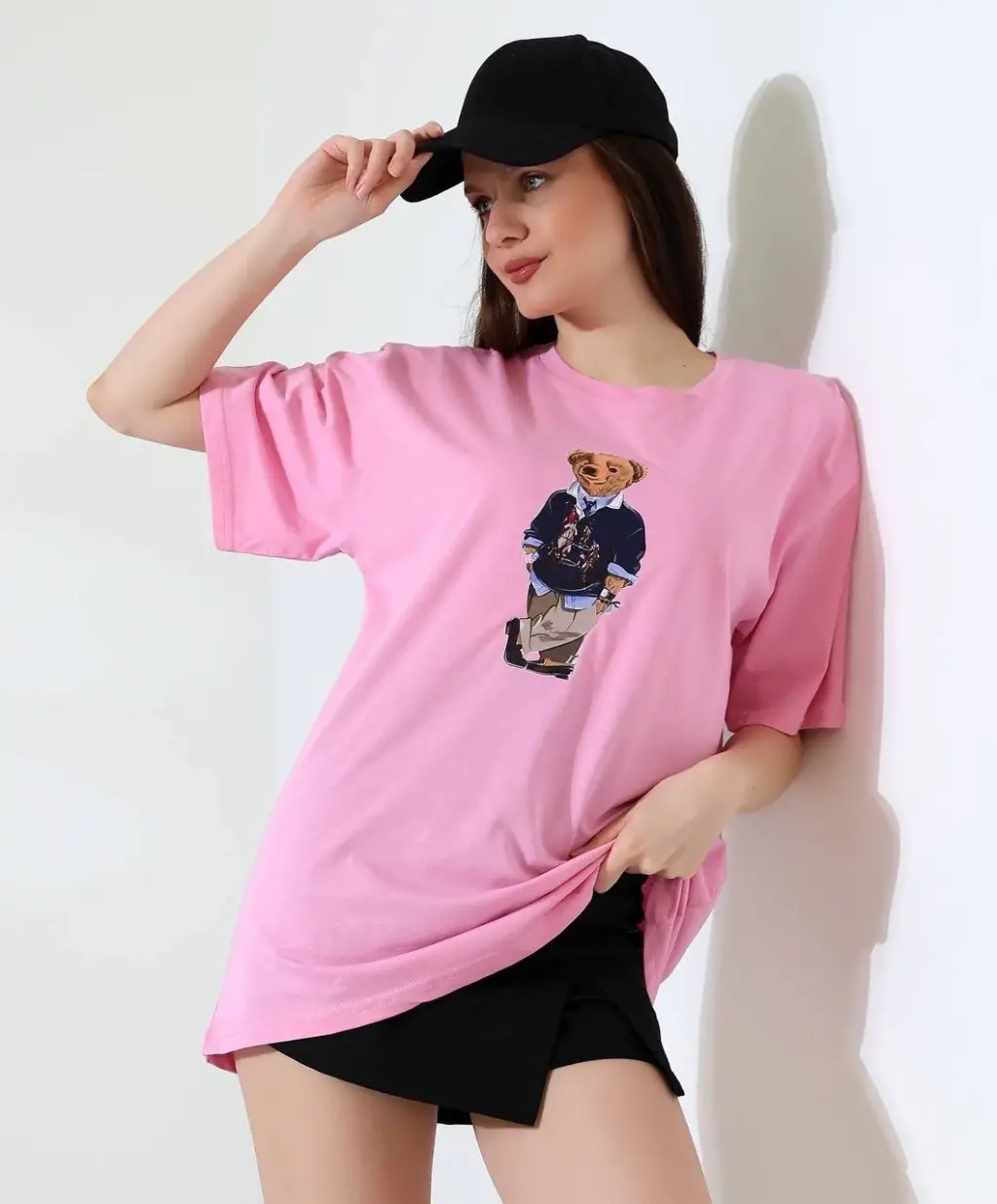 KAZAX marka Ayıcıklı Oversize Tişört, rahatlığı ve şıklığı bir arada sunuyor. Bu tişört, salaş kesimi ve yumuşak dokusuyla gün boyu konfor sağlar.