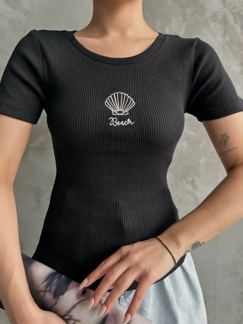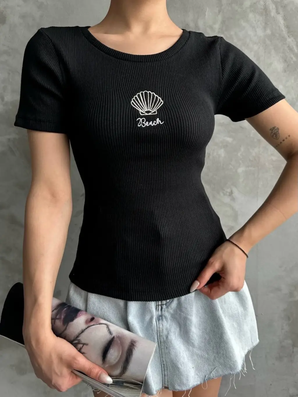 Bac nakışlı bluz, zarif ve şık bir görünüm sunan Kadın Giyim koleksiyonumuzun gözdesi.