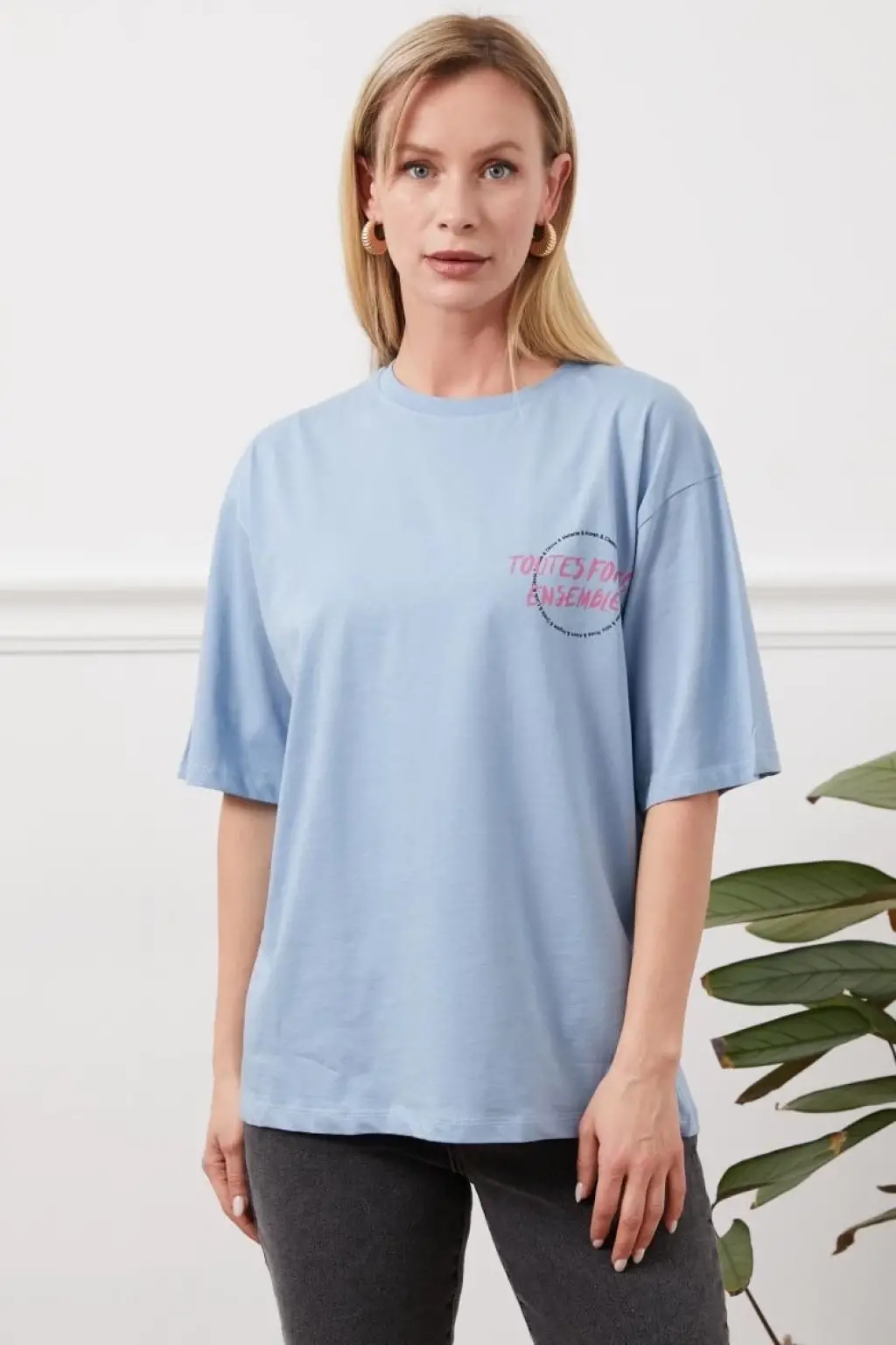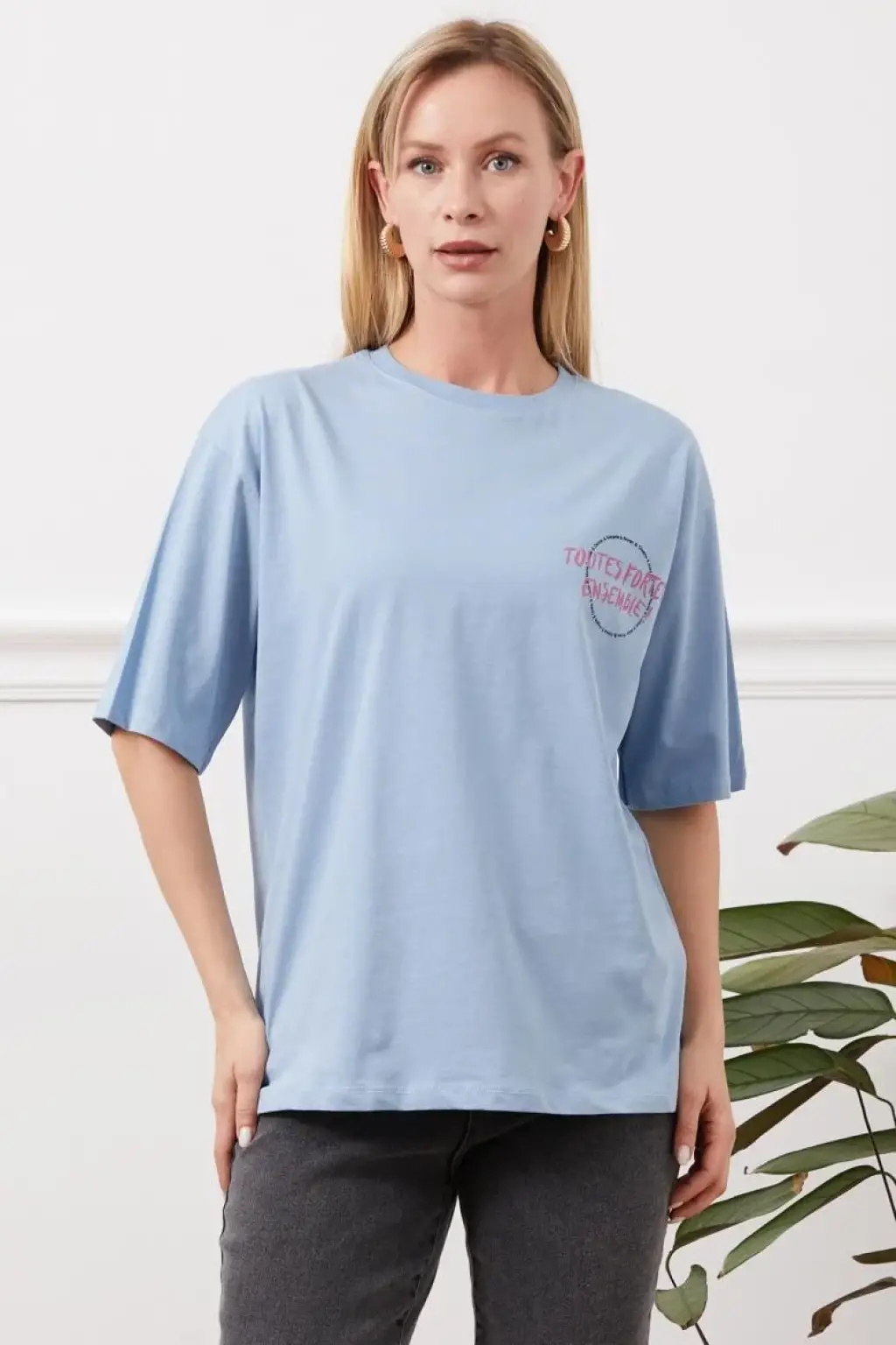 Bu mavi tişörtü günlük hayatta jean pantolonlarınızla kombinleyerek şık ve rahat bir görünüm elde edebilirsiniz.