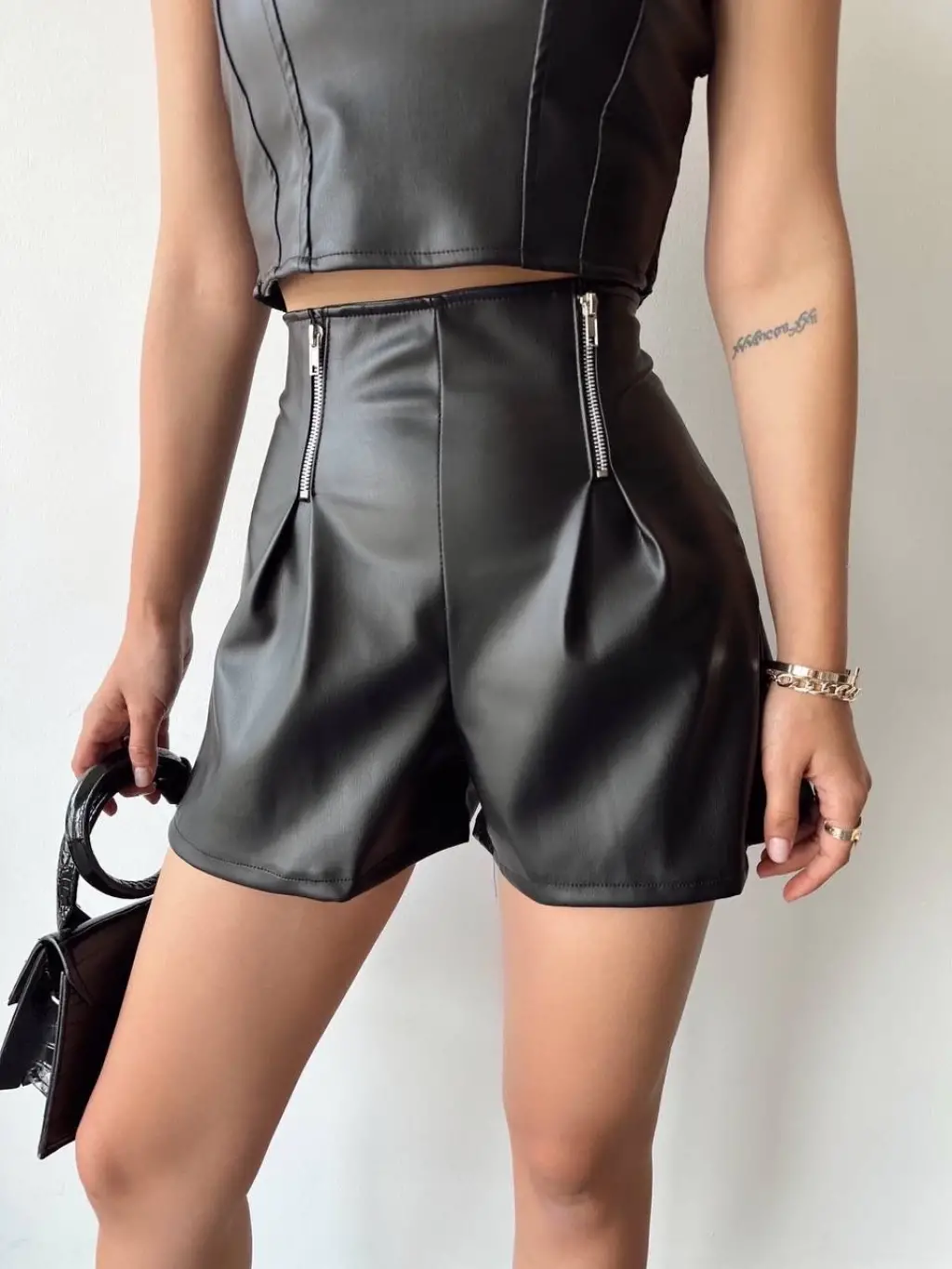 Çift fermuarlı deri şort h24394, günlük hayatta şıklığı ve konforu bir arada arayan kadınların favorisi olmaya aday!