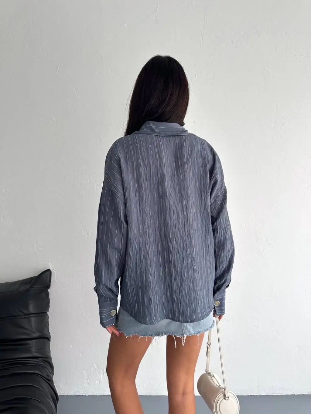 KAZAX çizgili oversize gömlek, şıklığı ve rahatlığı bir arada sunar.