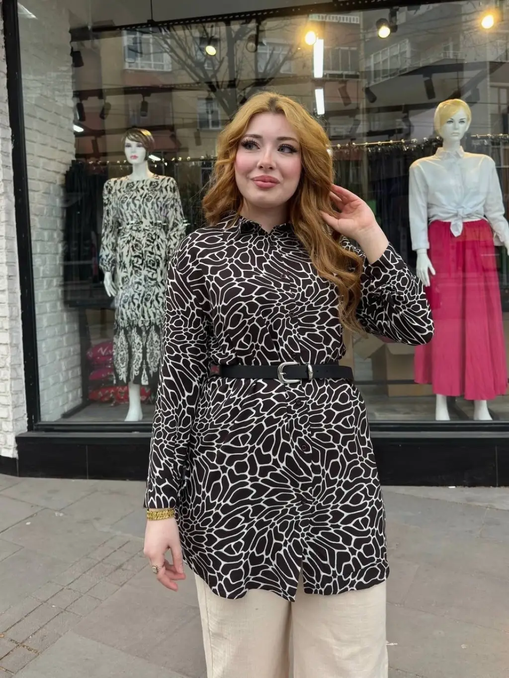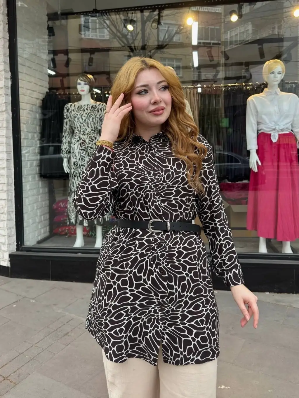 Desenli tunik gömlek, hem günlük hayatta hem de özel günlerde şıklığınızı tamamlamanız için ideal bir tercihtir.