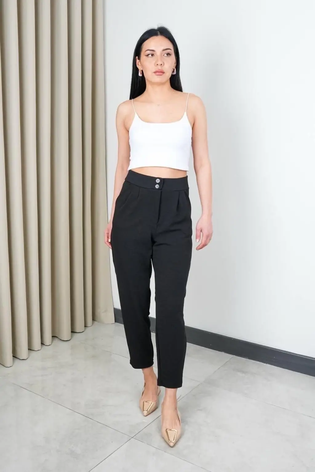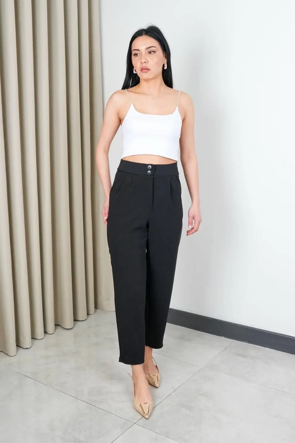 Havuç pantolon 3326, şıklığı ve rahatlığı bir arada sunan bir parçadır. Yüksek bel tasarımı sayesinde vücudu saran bir şekilde oturur ve belinizi ön plana çıkarır. Sade ve şık tasarımı, her tarza kolayca uyum sağlar. %100 pamuk kumaşıyla gün boyu konfor sunar. Geniş renk seçenekleriyle her zevke hitap eder.