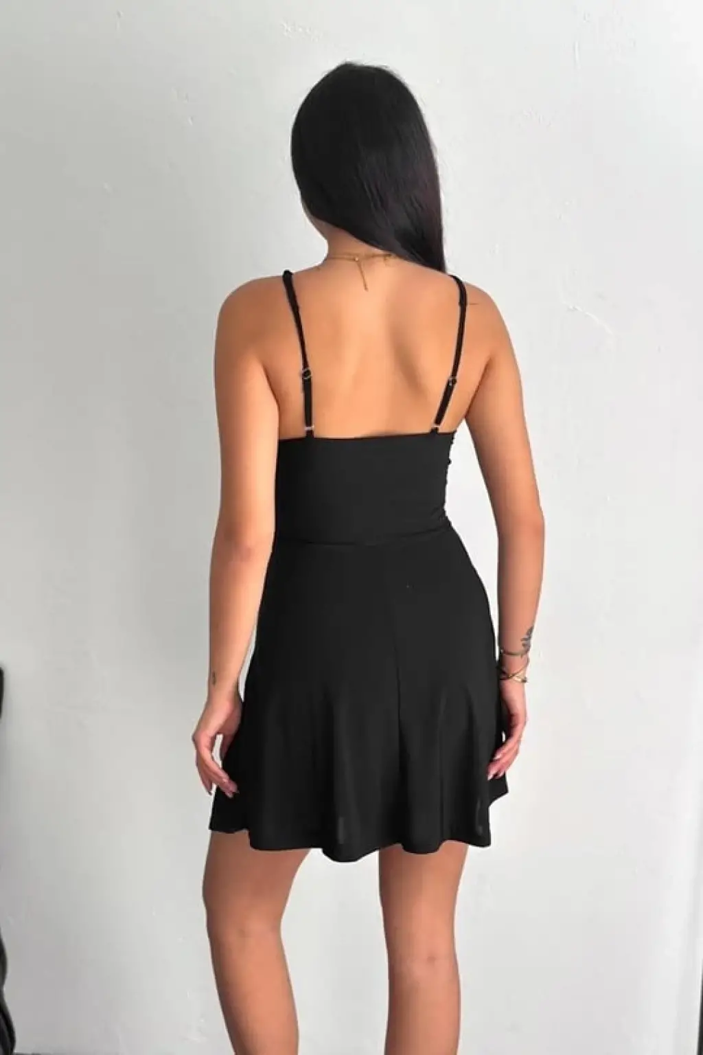 Şıklığı ve zarafeti bir arada sunan Ince Çift Askılı Mini Elbise, gardırobunuzun vazgeçilmezi olmaya aday!