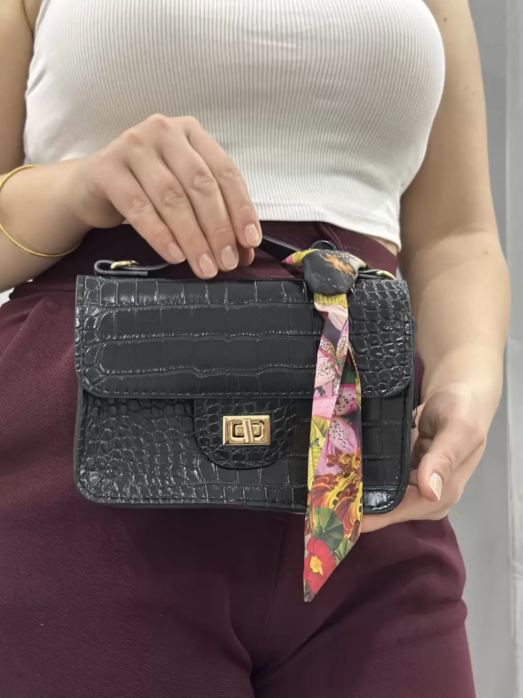 Jisse siyah cilt çanta, şıklık ve kullanışlılığı bir arada sunar. Hem günlük kullanıma uygun hem de özel günlerde tercih edebileceğiniz bir tasarıma sahiptir.