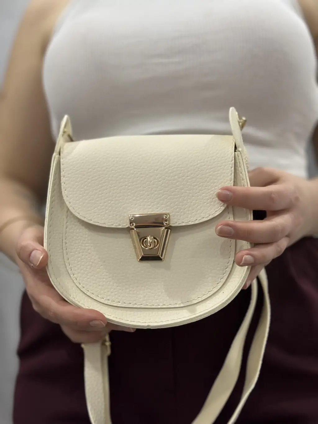Klasik kapaklı bej cilt çanta