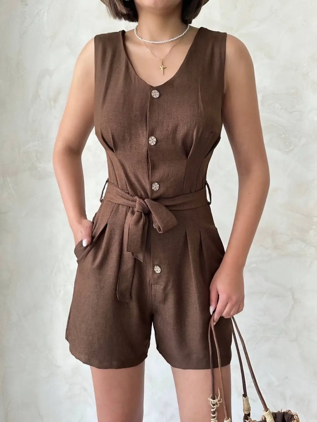 Şıklığı ve rahatlığı bir arada arayanların tercihi kuşaklı şortlu tulum, gardırobunuzun favorisi olmaya aday!