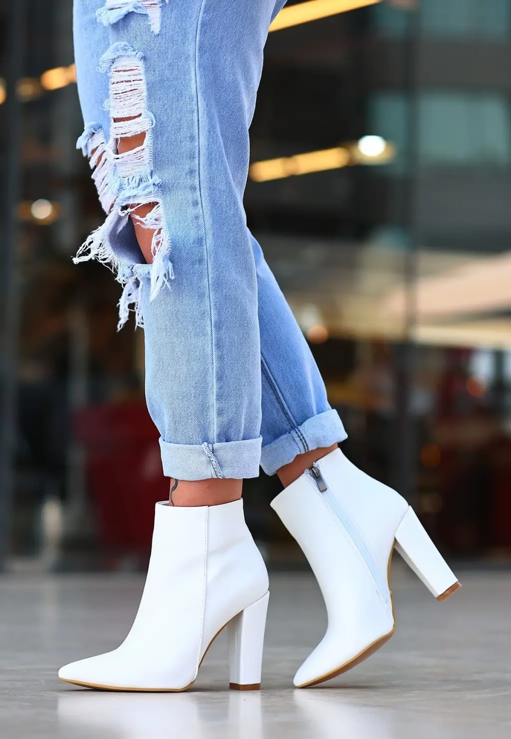 • Loora Beyaz Cilt Topuklu Bot