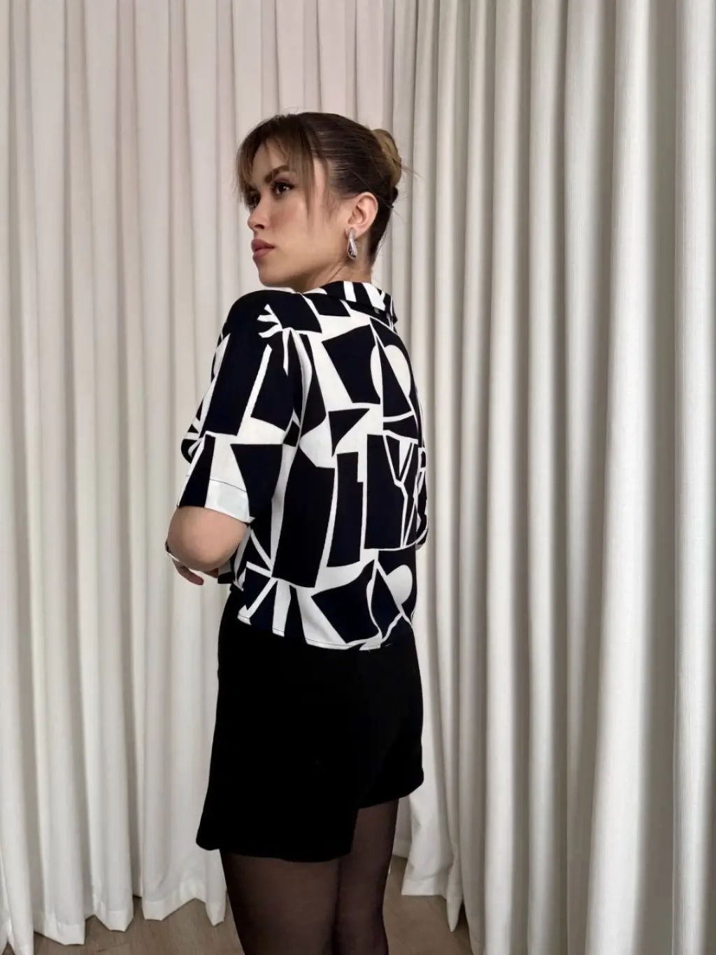 Siyah beyaz baskılı crop gömlek