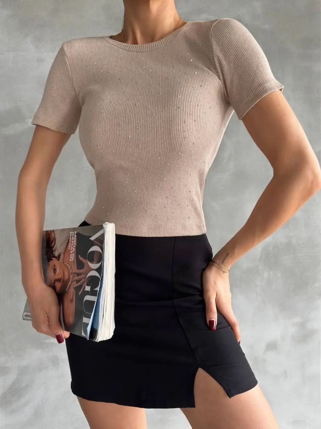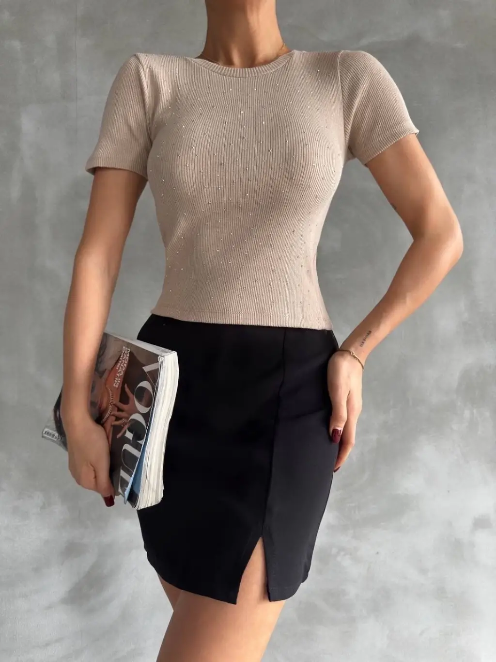 Taş baskılı kaş korse bluz