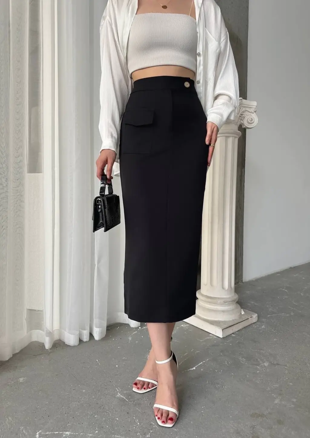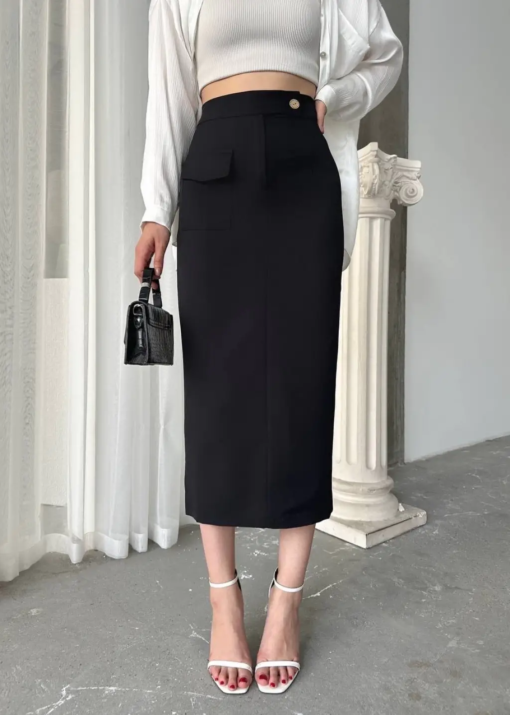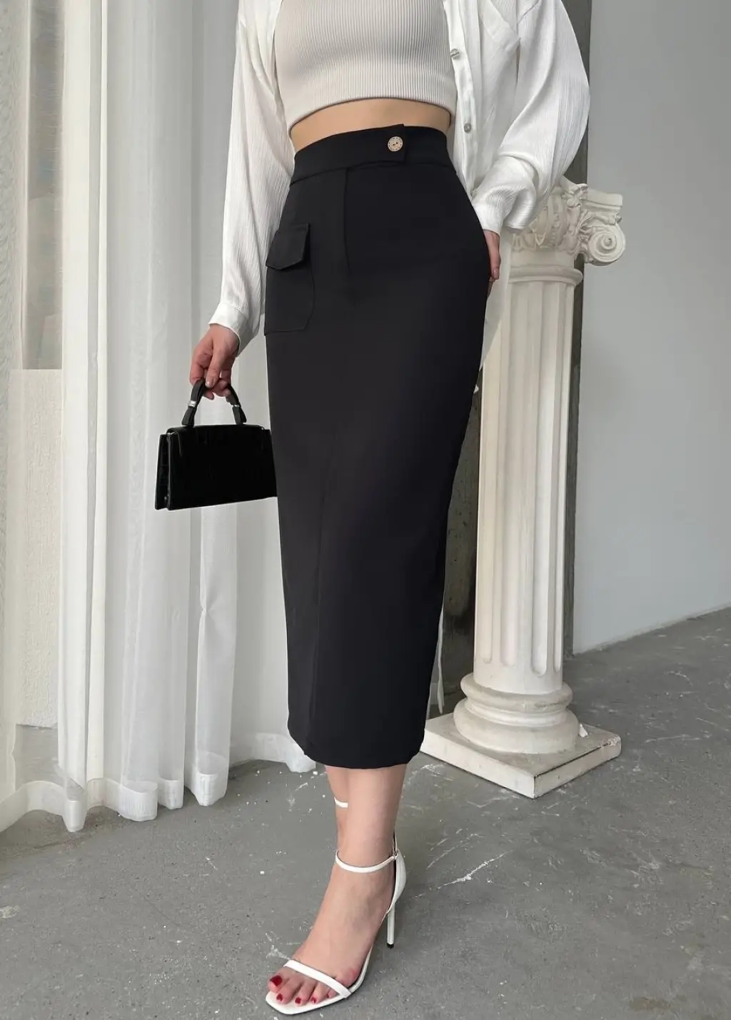 Midi boy deri kalem etek siyah h26780